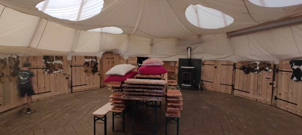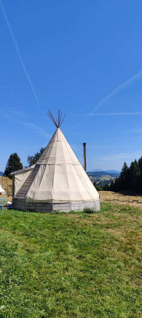 Sandrine; notre super organisatrice qui avait fait un repérage dans la semaine nous a fait découvrir les tourbières des creusâtes, la croix du berger et le village Tipi,……..on a bien trouvé le village mais on a pas vu d’indiens 🙂