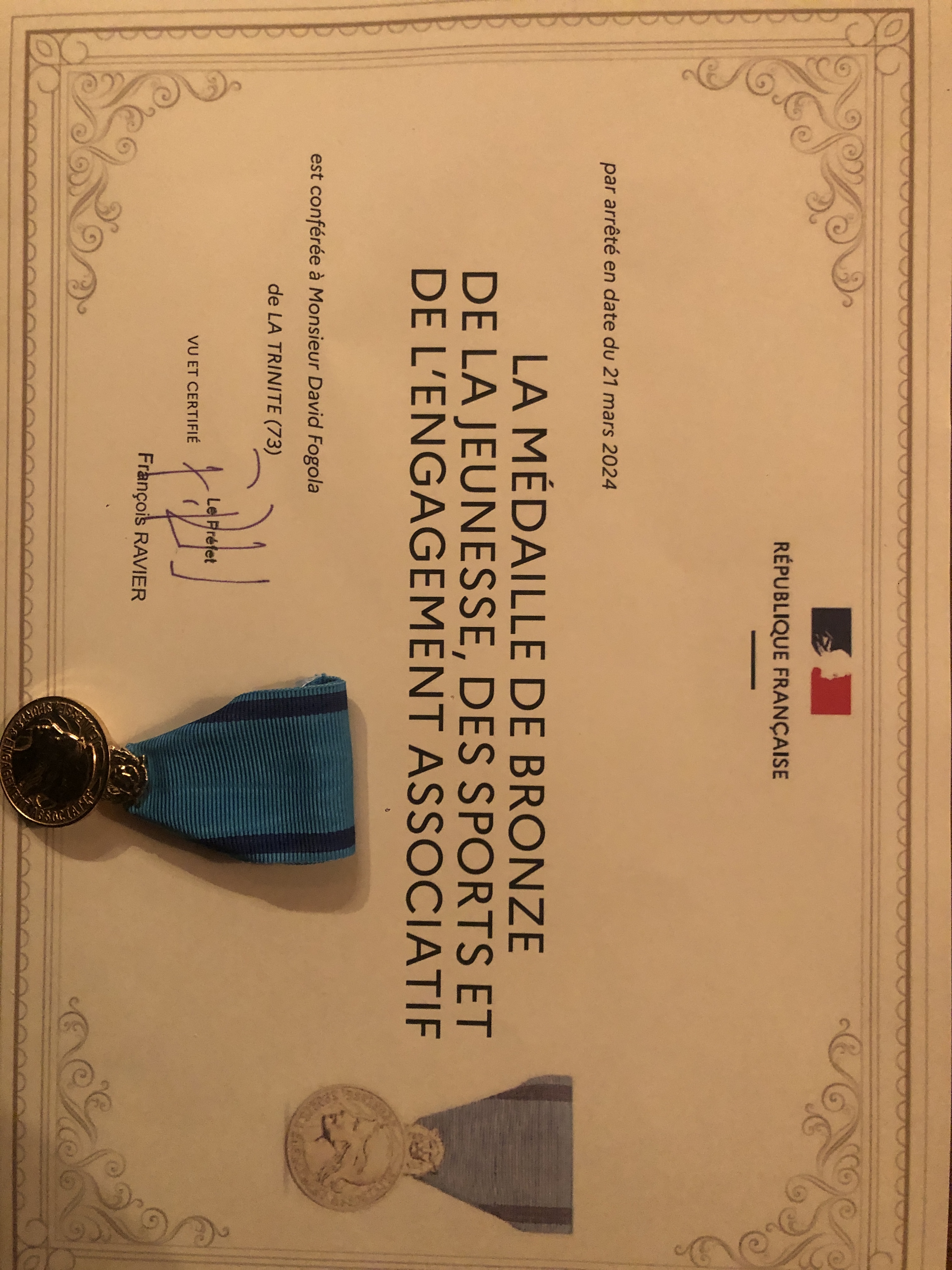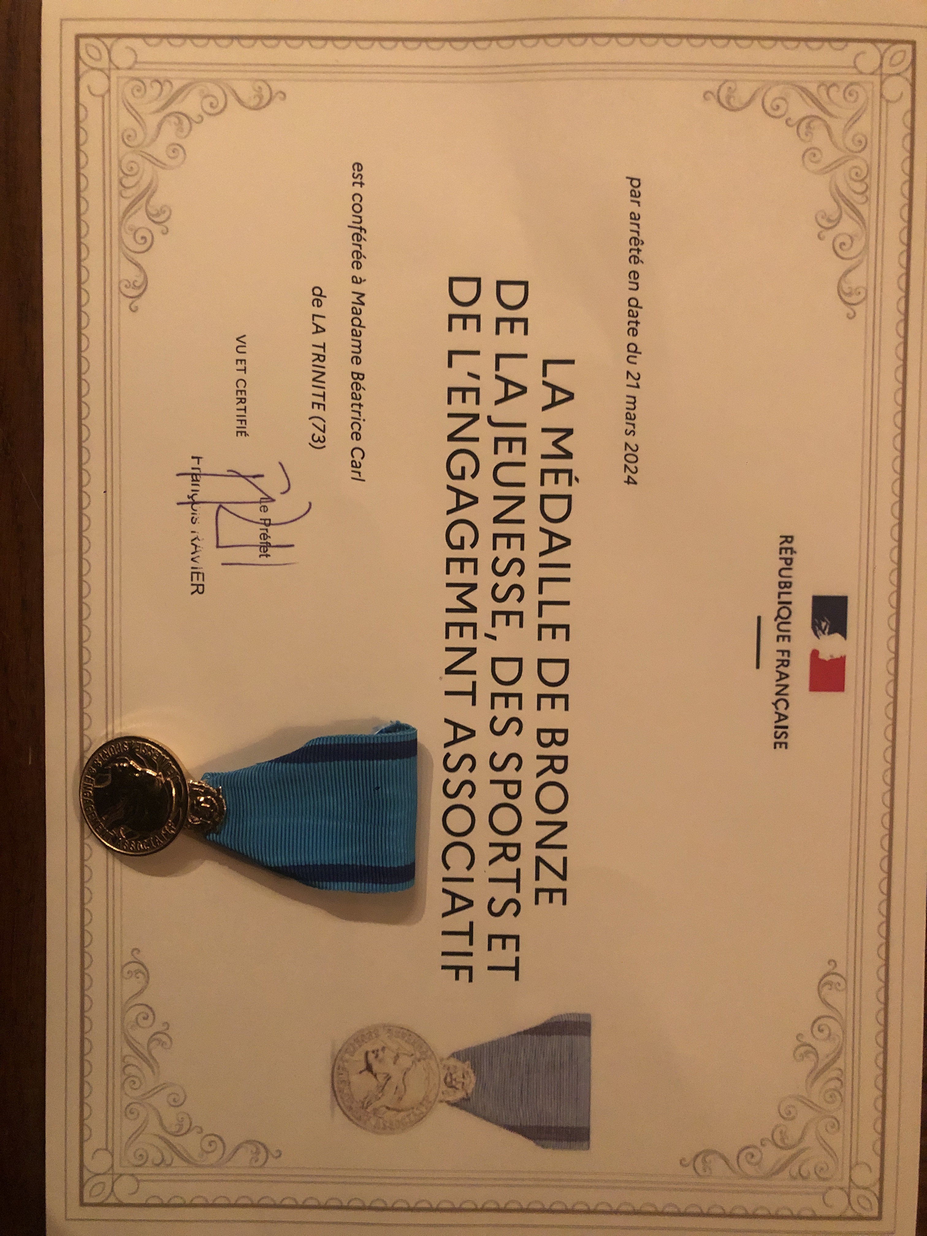 Notre trésorière Béatrice et notre président David ont été distingués et honorés de la médaille de Bronze Jeunesse et sport remise lors de cette cérémonie.