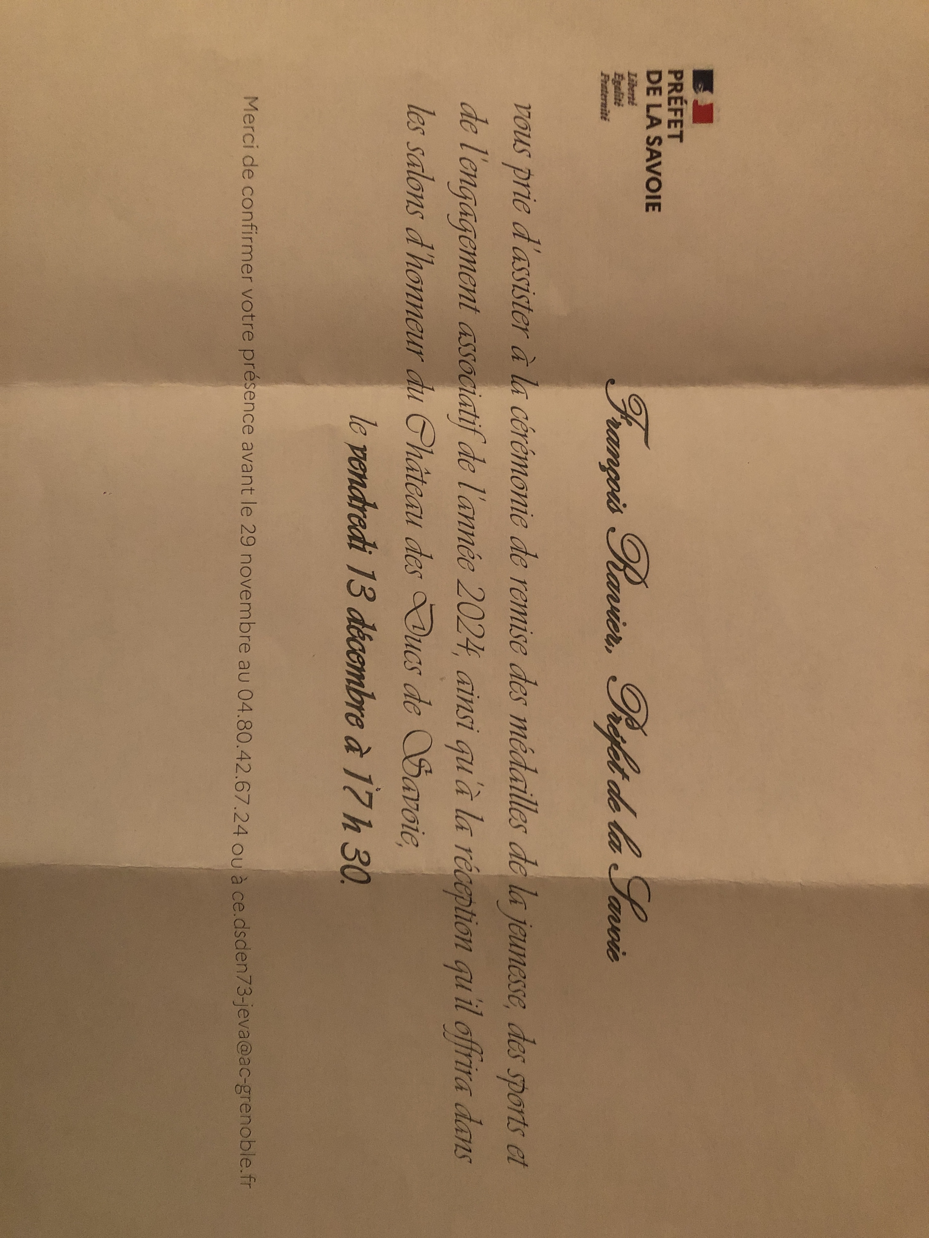Hier soir, se tenait la remise officielle des médailles jeunesse et sport dans les salons du château des ducs de Savoie qui héberge la préfecture de notre beau département.